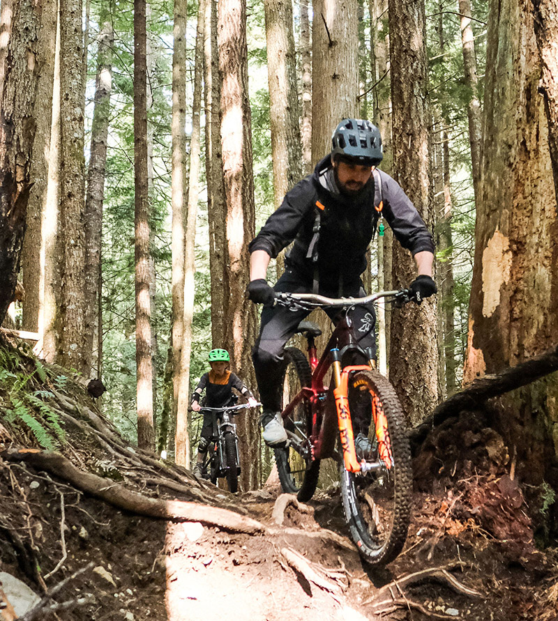 Manuals, gap jumps, drops, advanced line choice, black rock rolls and features, increasing trail speed and flow.